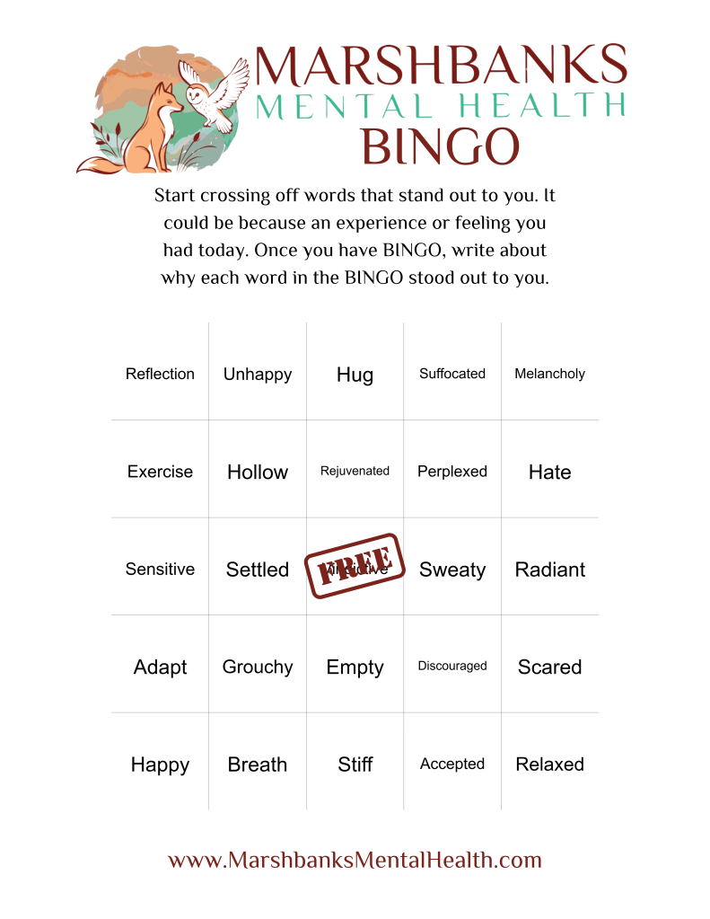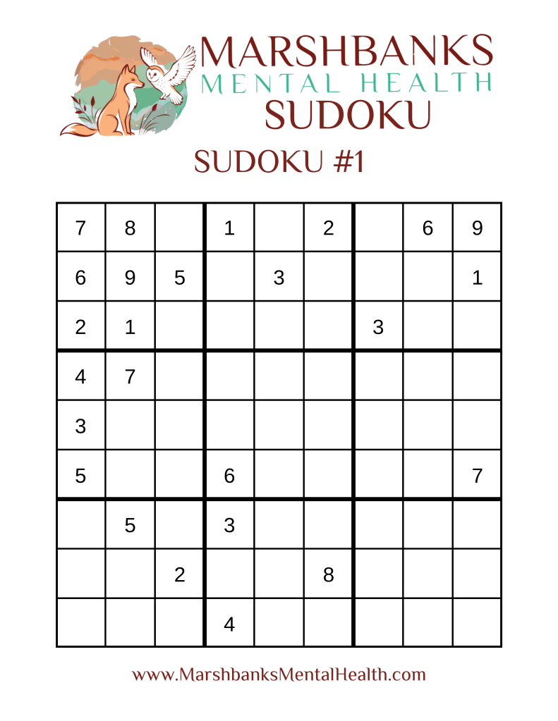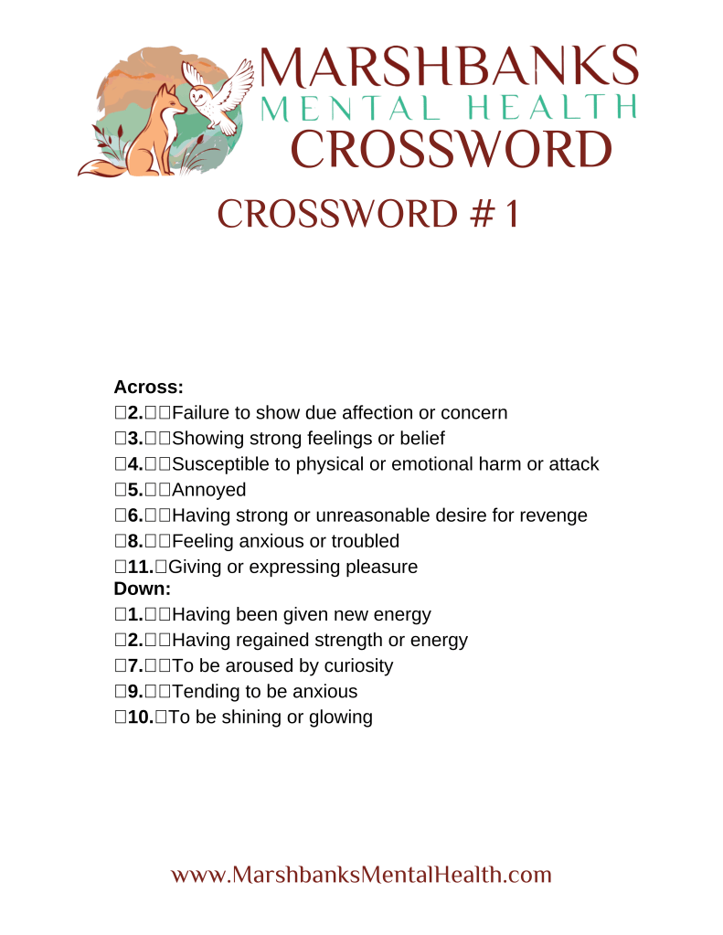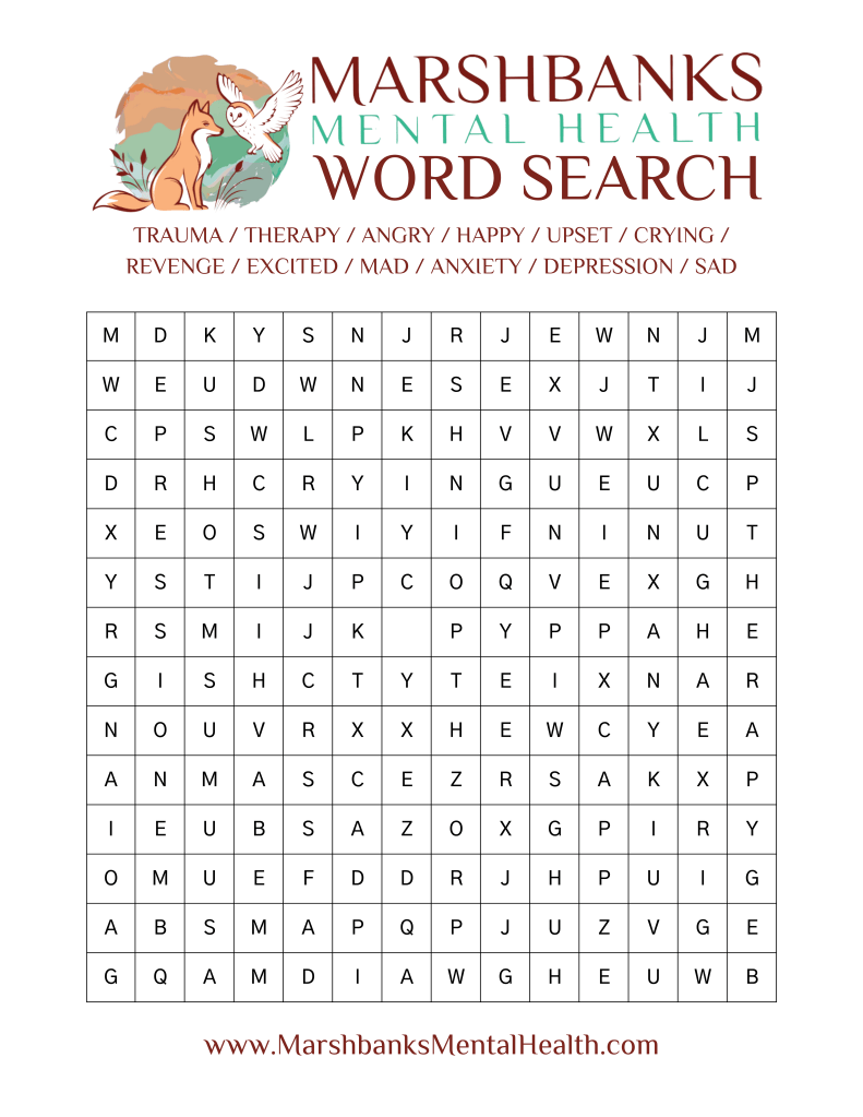 Marshbanks Mental Health is happy to bring you weekly activity pages to keep your mind working for YOU! Feel free to download any of the pages and come back next week for the answer keys!